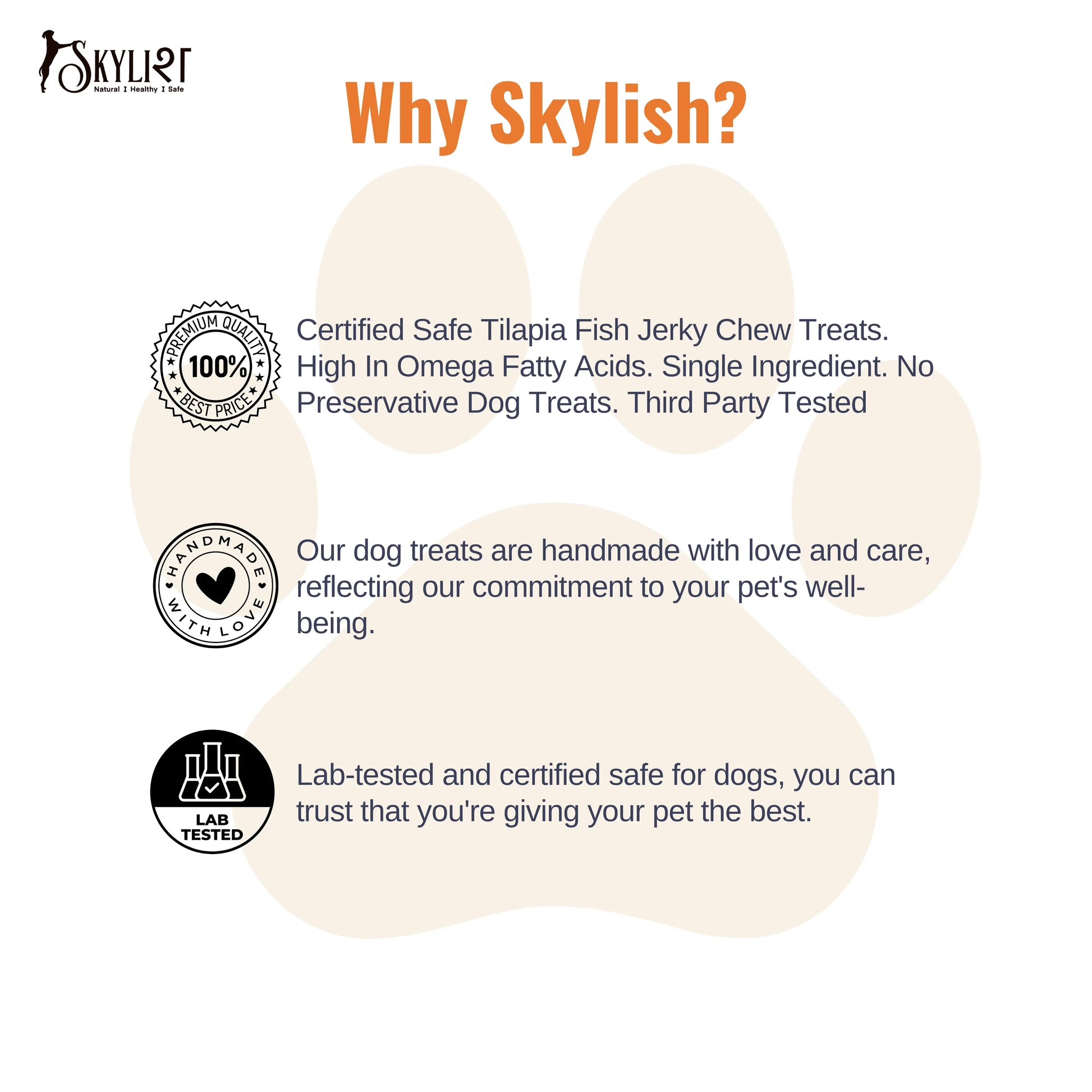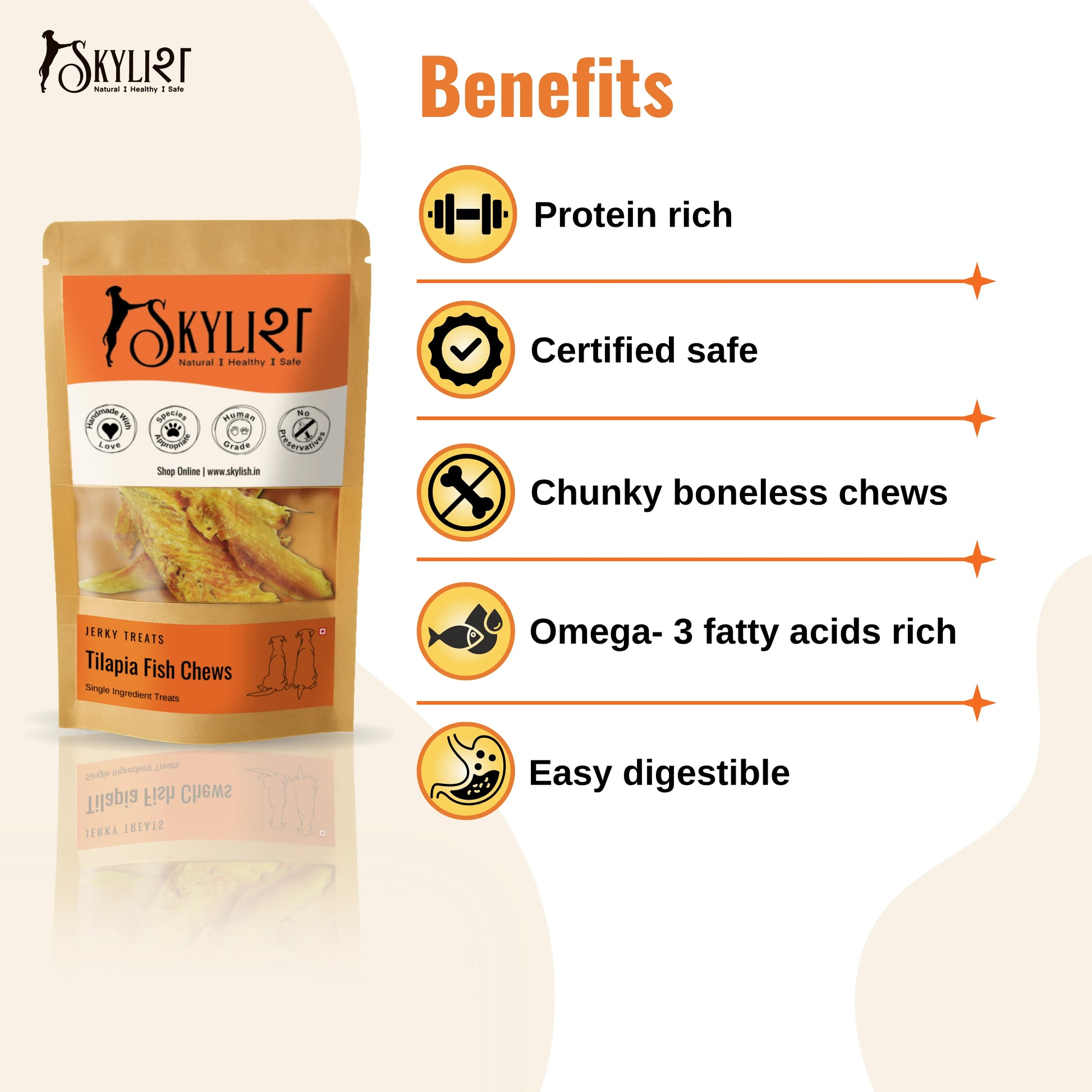 SKYLISH Tilapia Fish Chews | Chunky chews made from Tilapia fish fillets| Great source of protein| 100% natural| Homemade with love