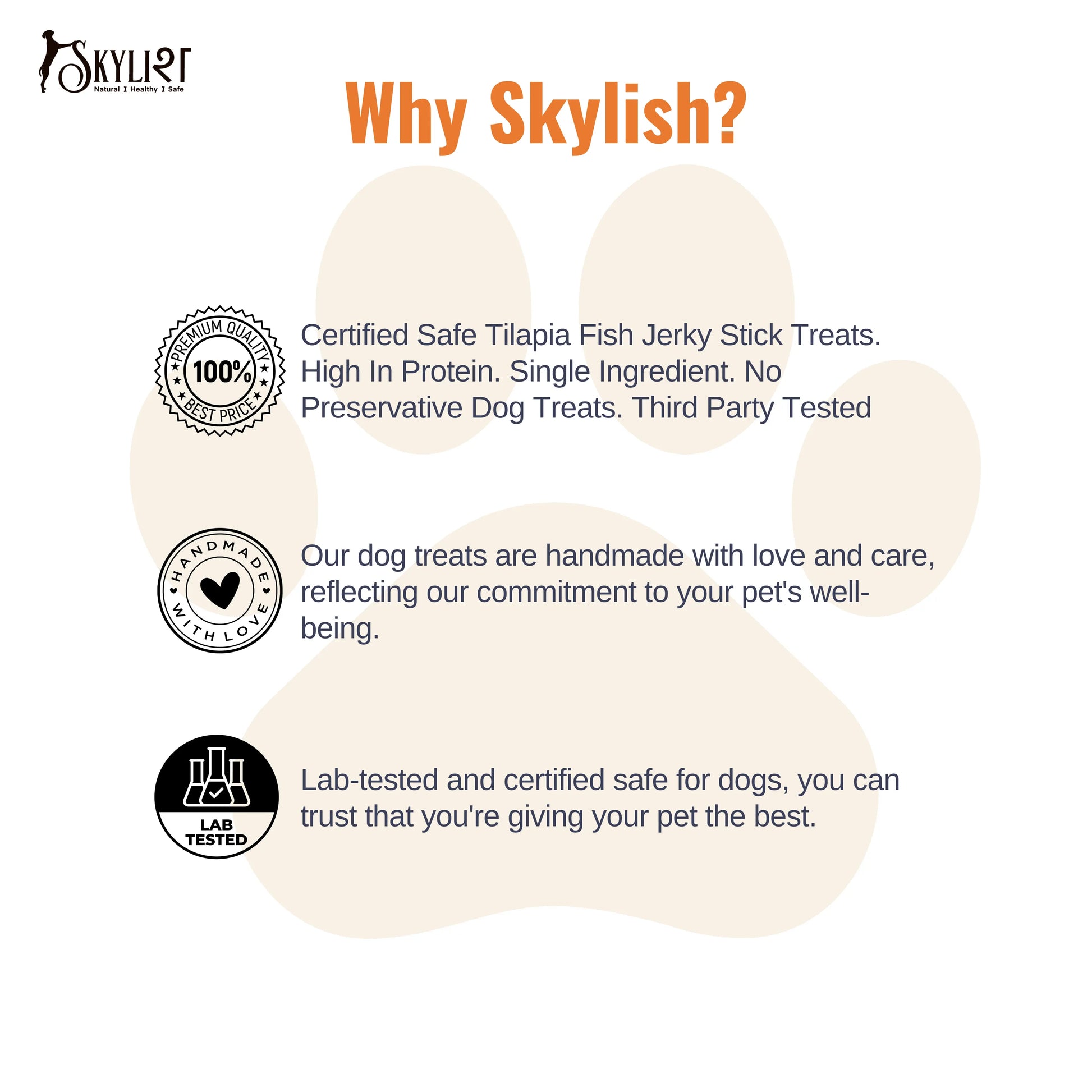 Certified Safe Tilapia Fish Jerky Stick Treats. High In Protein. Single Ingredient. No Preservative Dog Treats. Third Party Tested